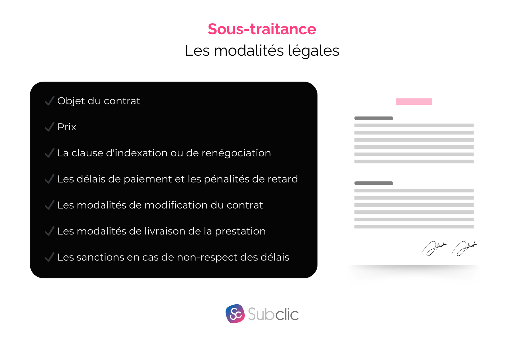 Il est fondamental que le contrat de sous-traitance précise clairement :