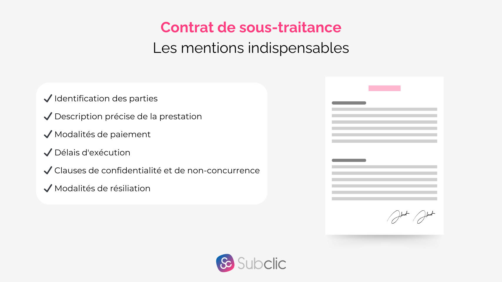 Un contrat de sous-traitance efficace doit comporter certaines mentions essentielles :