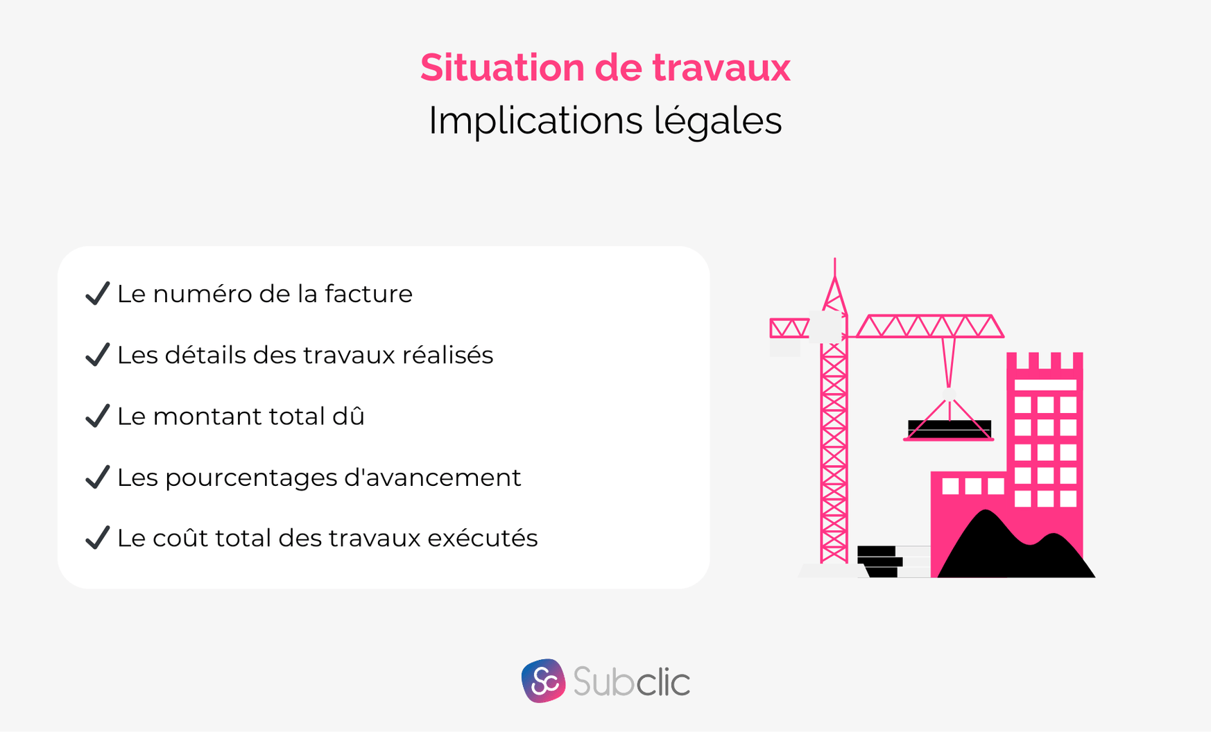 Les mentions obligatoires à inclure dans une facture de situation comprennent :